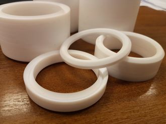 Шевронные манжеты изготавливаются из фторопласта-4 и композиций на его основе, путем механической обработки.